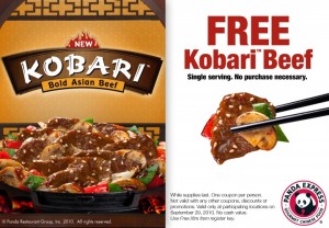 Print out the coupon and bring it into any participating Panda Express location to get your free Kobari Beef.